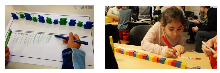 אפשר ליצור דגמים בעזרת עצמים מגוונים – בובות, קוביות, שעועית, נעליים, כובעים…